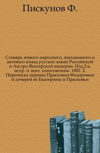 | Название транслитом | slovar-zhivogo-narodnogo-pismennogo-i-aktovogo-yazyka-russkih-yuzhan-rossiyskoy-i-avstro-vengerskoy-imperii-izd-2-e-ispr-i-znachast-popolnennoe-1882-2-perepiska-caricy-praskovi-fedorovn-kollektiv-avtorov |