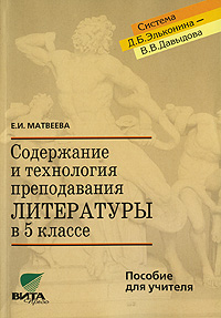 | Полное название книги | Е. И. Матвеева Содержание и технология преподавания литературы в 5 классе. Пособие для учителя |