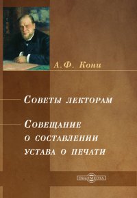 | Полное название книги | А. Ф. Кони Советы лекторам. Совещание о составлении устава о печати |