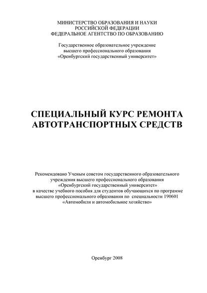 | Полное название книги | Коллектив авторов Специальный курс ремонта автотранспортных средств |