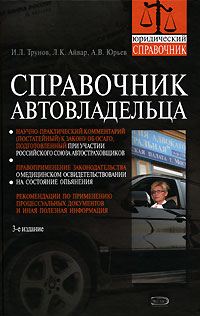 Книга должна стать настольным пособием владельцев и водителей автотранспортных средств. Вместе с тем она предназначена для студентов юридических вузов, аспирантов и преподавателей правовых дисциплин, адвокатов, судей, работников ГИБДД и следователей системы МВД России, а также для всех граждан, соприкасающихся с проблемами страхования гражданской ответственности владельцев транспортных средств. Это и многое другое вы найдете в книге Справочник автовладельца (И. Л. Трунов, Л. К. Айвар, А. В. Юрьев)