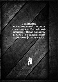 | Полное название книги | Коллектив авторов Сравнение постановлений законов гражданских Российской империи (Свод законов Т. X, ч. 1) с Гражданским кодексом французским |