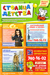 Специализированный рекламно-информационный справочник о товарах и услугах для детей любого возраста. Многочисленные советы и сведения для родителей - от подготовки к появлению ребенка на свет до окончания школы "и даже получения первой профессии..."