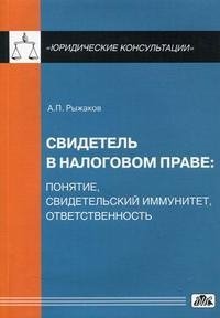 | Полное название книги | А. П. Рыжаков Свидетель в налоговом праве. Понятие, свидетельский иммунитет, ответственность |