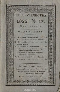 | Полное название книги | Сын Отечества. № 17, 1825 год |