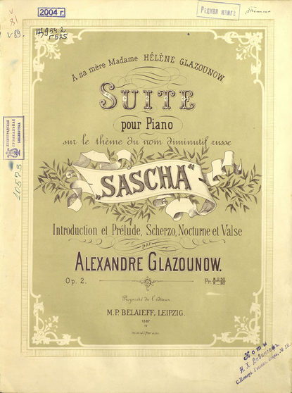 | Полное название книги | Александр Константинович Глазунов, Сюита для фортепиано на имя "Саша" |