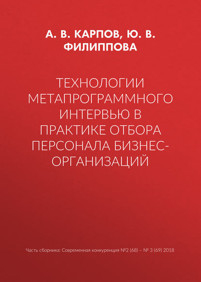 | Полное название книги | А. В. Карпов, Ю. В. Филиппова Технологии метапрограммного интервью в практике отбора персонала бизнес-организаций |