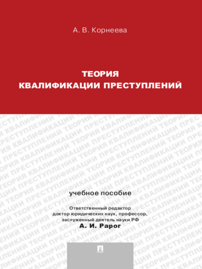 На сайте представлено только описание и выходные данные книги «Теория квалификации преступлений. Учебное пособие для магистрантов Алексей Иванович Рарог, Анна Владимировна Корнеева». Сайт не является распространителем книги. Сайт не предоставляет возможности купить, читать онлайн или скачать бесплатно книгу «Теория квалификации преступлений. Учебное пособие для магистрантов Алексей Иванович Рарог, Анна Владимировна Корнеева». Сайт предназначен для лиц старше 18 лет. Если вам не исполнилось 18 лет - незамедлительно покиньте сайт. Оставаясь на сайте вы подтвердаете, что вам исполнилось 18 лет.