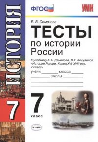 | Полное название книги | Елена Викторовна Симонова Тесты по истории России: 7 класс: к учебнику А.А.Данилова, Л.Г.Косулиной " История России: Конец XVI-XVIII век. 7 класс" |