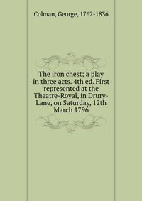 | Полное название книги | George Colman The iron chest; a play in three acts. 4th ed. First represented at the Theatre-Royal, in Drury-Lane, on Saturday, 12th March 1796 |