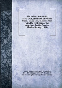 | Полное название книги | Grose, Howard B. (Howard Benjamin), 1851-1939 The Judson centennial, 1814-1914, celebrated in Boston, Mass., June 24-25, in connection with the centenary of the American Baptist Foreign Mission Society (1914) |