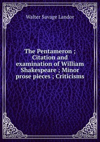 | Полное название книги | Walter Savage Landor The Pentameron ; Citation and examination of William Shakespeare ; Minor prose pieces ; Criticisms |