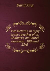 | Полное название книги | David King Two lectures, in reply to the speeches of dr. Chalmers, on Church extension . 18th and 23rd |