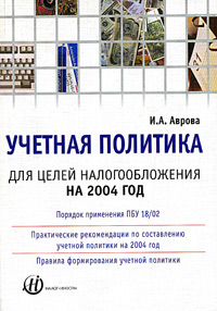 | Полное название книги | И. А. Аврова Учетная политика для целей налогообложения на 2004 год |