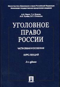 | Полное название книги | Степалин В.П., Чучаев А.И., Есаков Г.А., Рарог А.И. Уголовное право России: Части Общая и Особенная |