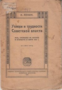 | Полное название книги | И. Ленин В.И. Успехи и трудности Советской власти. Речь,сказанная на митинге в Петербурге 13 марта 1919 г |