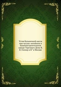 | Полное название книги | Коллектив авторов Устав больничной кассы при чугуно-литейном и машиностроительном заводе Торговаго Дома В.Я. Гоппер и К° в Москве |