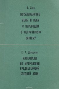 | Полное название книги | В. Хинц, Е. А. Давидович В. Хинц. Мусульманские меры и веса с переводом в метрическую систему. Е. А. Давидович. Материалы по метрологии средневековой Средней Азии |