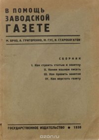 | Полное название книги | И. Старобогатов, А. Григоренко, М. Гус, М. Браз В помощь заводской газете. Сборник |
