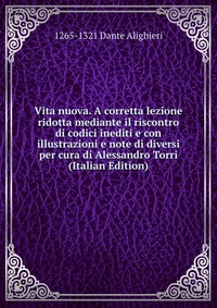 | Полное название книги | 1265-1321 Dante Alighieri Vita nuova. A corretta lezione ridotta mediante il riscontro di codici inediti e con illustrazioni e note di diversi per cura di Alessandro Torri (Italian Edition) |