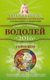 | Полное название книги | Борщ Татьяна Водолей. Самый полный гороскоп на 2016 год. 21 января - 18 февраля |