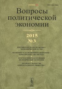 Вашему вниманию предлагается очередной номер журнала "Вопросы политической экономии".<br> Главные темы номера:<br> <li> Российская драма политико-экономической науки;<br> <li> Политическая экономия и экономика: один предмет, два метода; <br> <li> Прогностическая функция политической экономии; <br> <li> Перейдет ли Россия к интегральному обществу? Это и многое другое вы найдете в книге Вопросы политической экономии, №3, 2015 (А. В. Бузгалин)