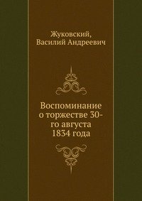 | Полное название книги | Василий Андреевич, Жуковский Воспоминание о торжестве 30-го августа 1834 года |