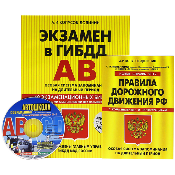| Полное название книги | А. И. Копусов-Долинин Все для автошколы. Правила дорожного движения РФ с комментариями и иллюстрациями. Экзамен в ГИБДД АВ (комплект из 2 книг + CD-ROM) |