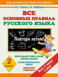 | Полное название книги | Узорова Ольга Васильевна, Нефедова Елена Алексеевна Все основные правила русского языка. 2 класс. Повтори летом! |