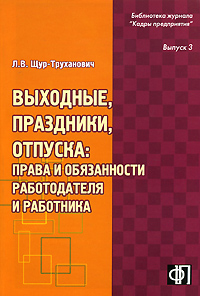 | Полное название книги | Л. В. Щур-Труханович Выходные, праздники, отпуска. Права и обязанности работодателя и работника |