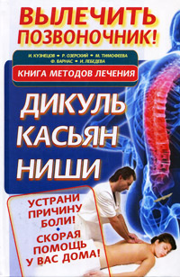 | Полное название книги | И. Лебедева, Р. Озерский, М. Тимофеева, Ф. Варнас, И. Кузнецов Вылечить позвоночник! Книга методов лечения. Дикуль, Касьян, Ниши |
