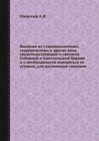 | Полное название книги | А. И. Озерский Выписки из старописьменных, старопечатных и других книг, свидетельствующие о святости Соборной и Апостольской Церкви и о необходимости покоряться ее уставам, для достижения спасения |