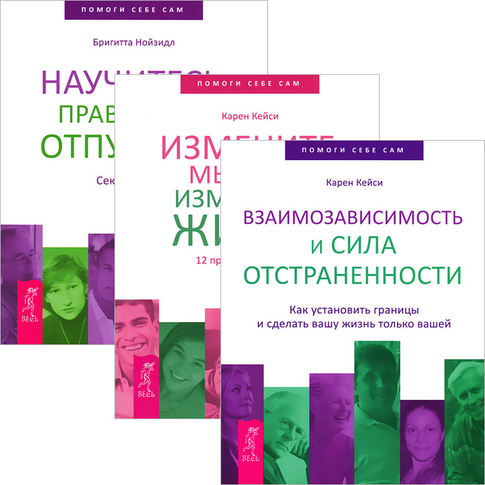 В комплект вошли книги К.Кейси "Взаимозависимость и сила отстраненности. Как установить границы и сделать вашу жизнь только вашей", "Измените мысли - изменится жизнь. 12 простых принципов" и Б.Нойзидл "Научитесь правильно отпускать. Секрет успеха".