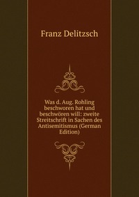 | Полное название книги | Franz Delitzsch Was d. Aug. Rohling beschworen hat und beschworen will: zweite Streitschrift in Sachen des Antisemitismus (German Edition) |