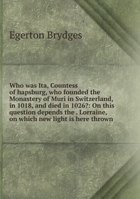 | Полное название книги | Egerton Brydges Who was Ita, Countess of hapsburg, who founded the Monastery of Muri in Switzerland, in 1018, and died in 1026?: On this question depends the . Lorraine, on which new light is here thrown |