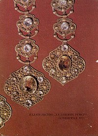 В альбом включены ювелирные украшения, выполненные только из драгоценных материалов, так как в них наиболее ярко отразились возможности ювелирного ремесла каждого народа, и в то же время они дают довольно полную картину основных традиционных типов национальных украшений.